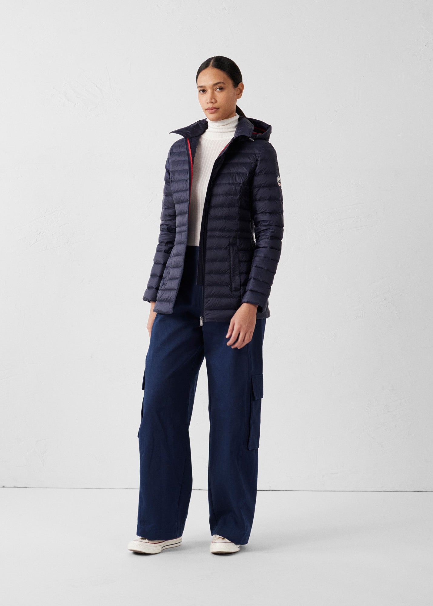 La doudoune NOUR 2.0 est mi-longue, bien couvrante et ajustée avec sa coupe appuyée par de jolies découpes. Légère et moderne, elle est dotée d’un col rabattable qui prend avec élégance le relais lorsque la capuche, amovible, est retirée. Une veste qui reprend les codes des modèles iconiques de JOTT, avec ses coutures intérieures contrastantes et son caractère pochonnable.