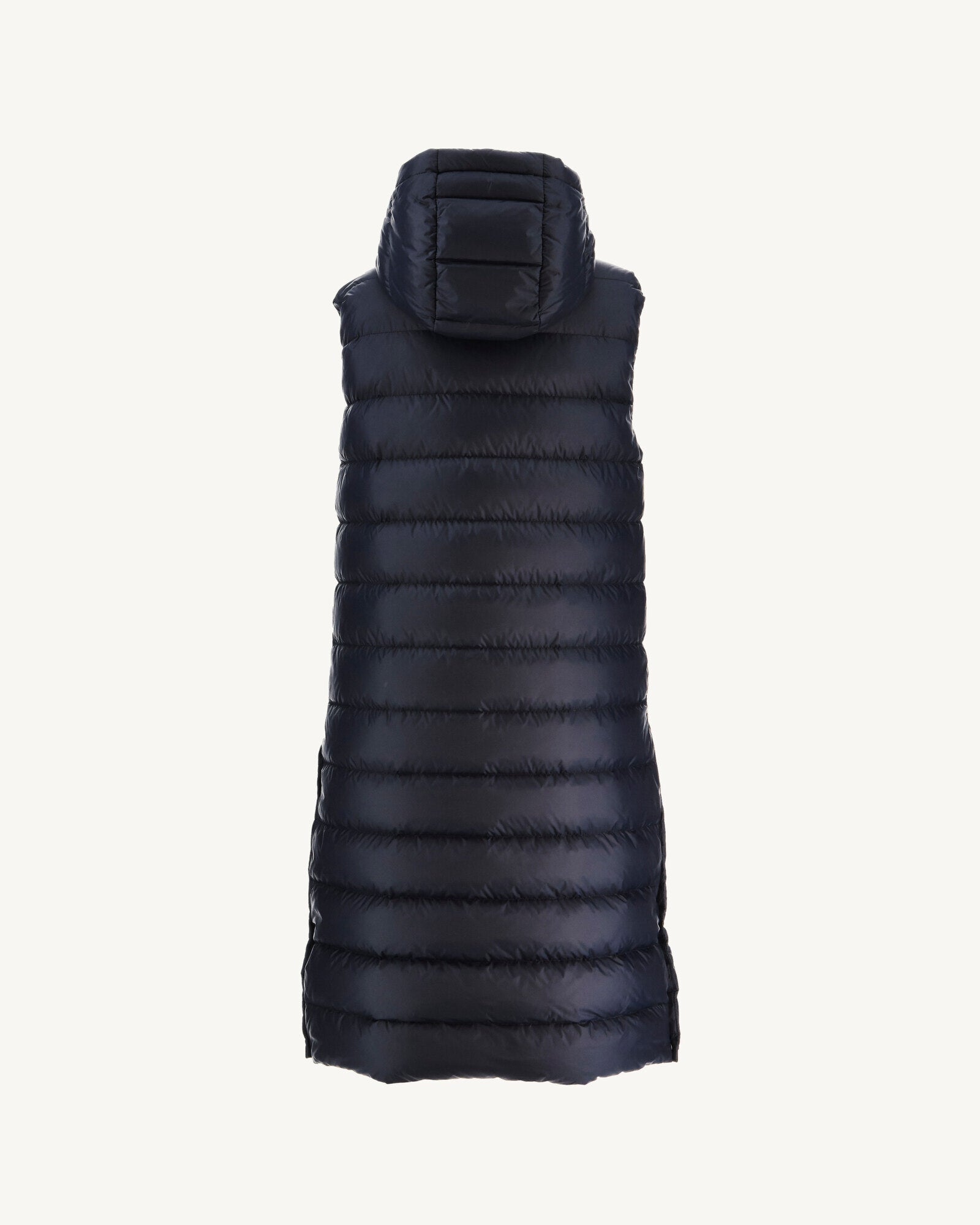 LOLA de JOTT, un ovni dans l’univers des doudounes ! Très longue, elle propose, selon l’envie, un porter sage ou plus libre grâce aux fentes en bas du vêtement à ouvrir ou fermer (pressions). Sans manches, on la porte aussi bien sur de la maille à la mi-saison que superposée à une doudoune légère en hiver. Son col assez haut et sa capuche vous protègent parfaitement. LOLA est coupée dans une matière en fibres recyclées légèrement mat et réalisée dans un matelassage aux piqures larges et contemporaines. Un vêtement unique.