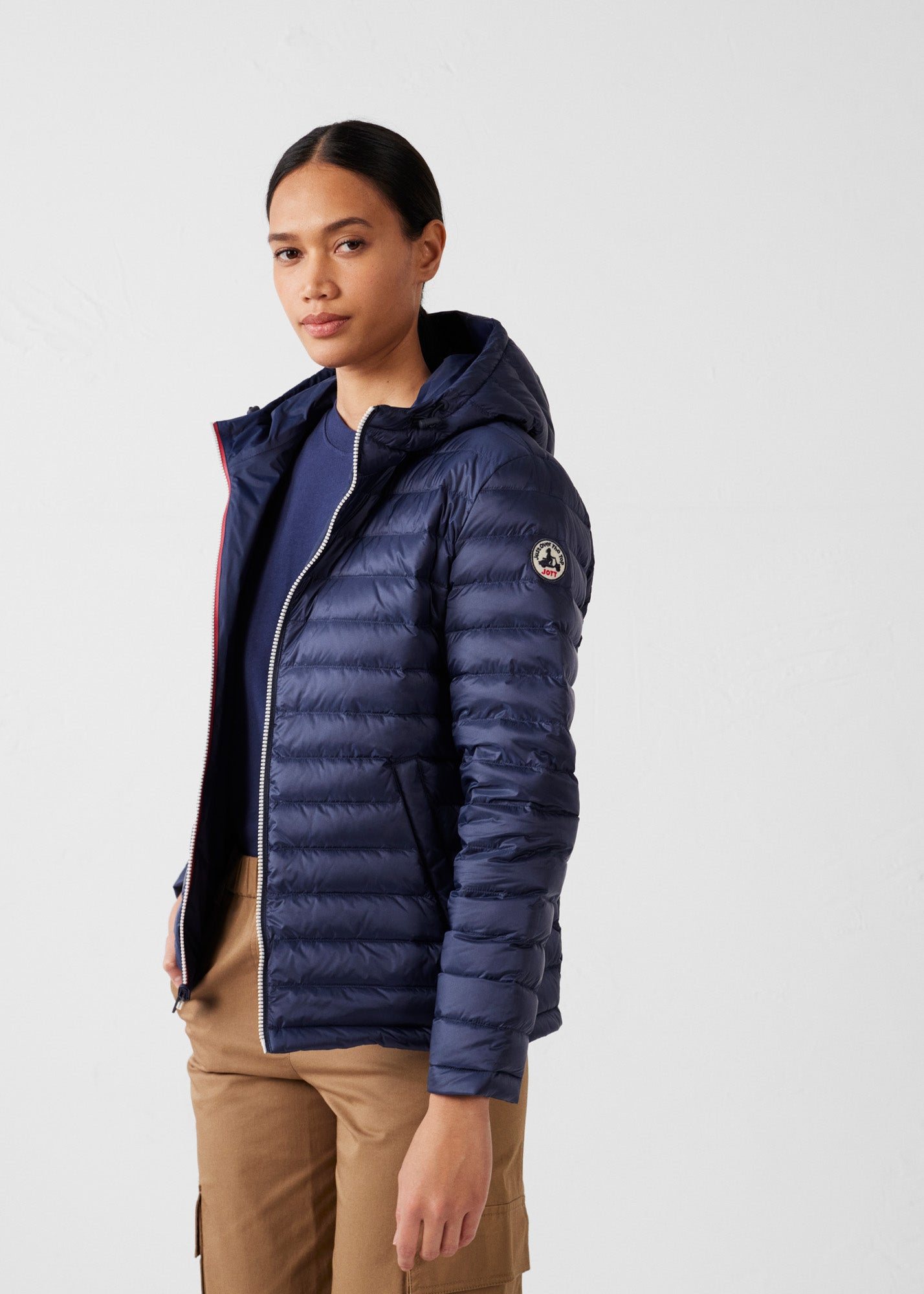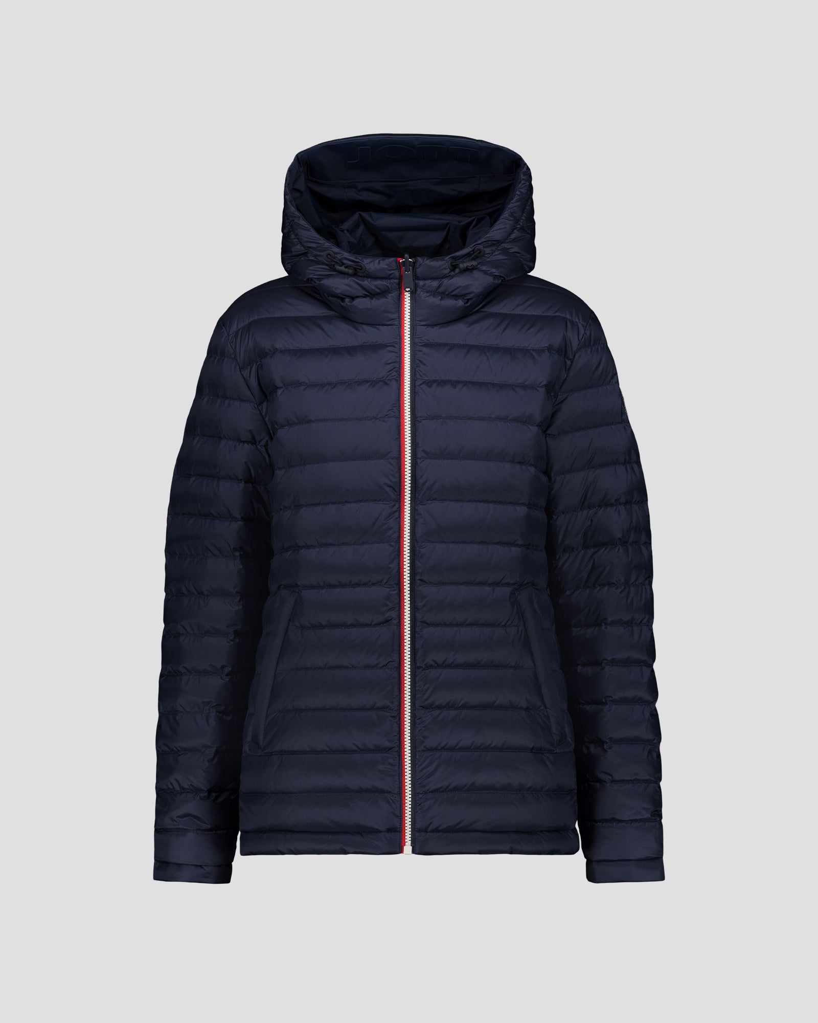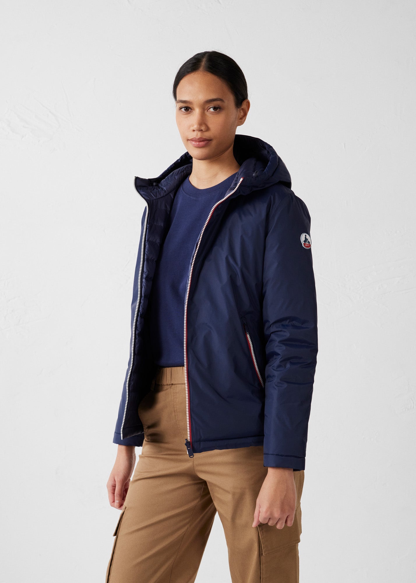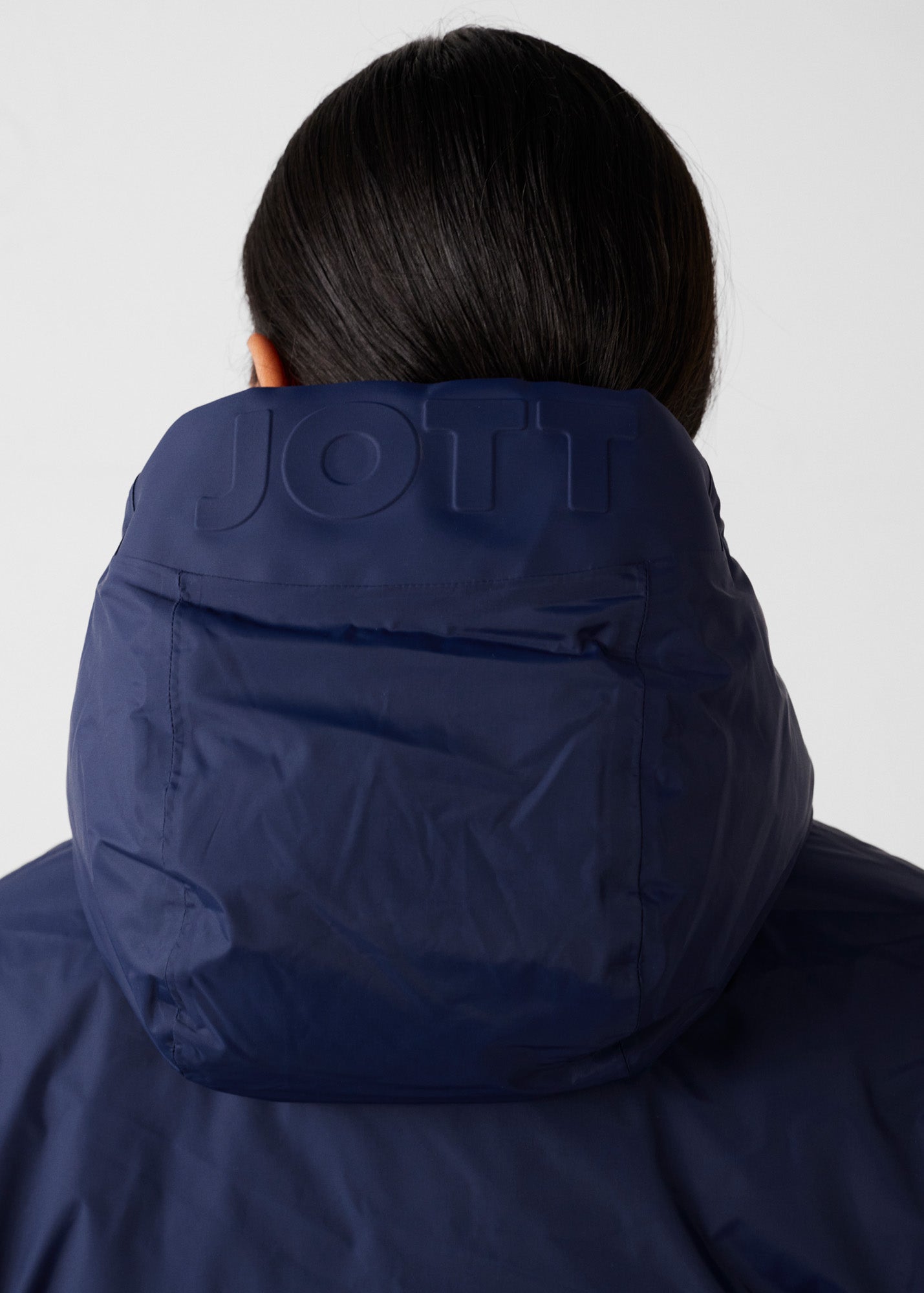 - Détail ' JOTT ' embossé sur le dessus de la capuche
