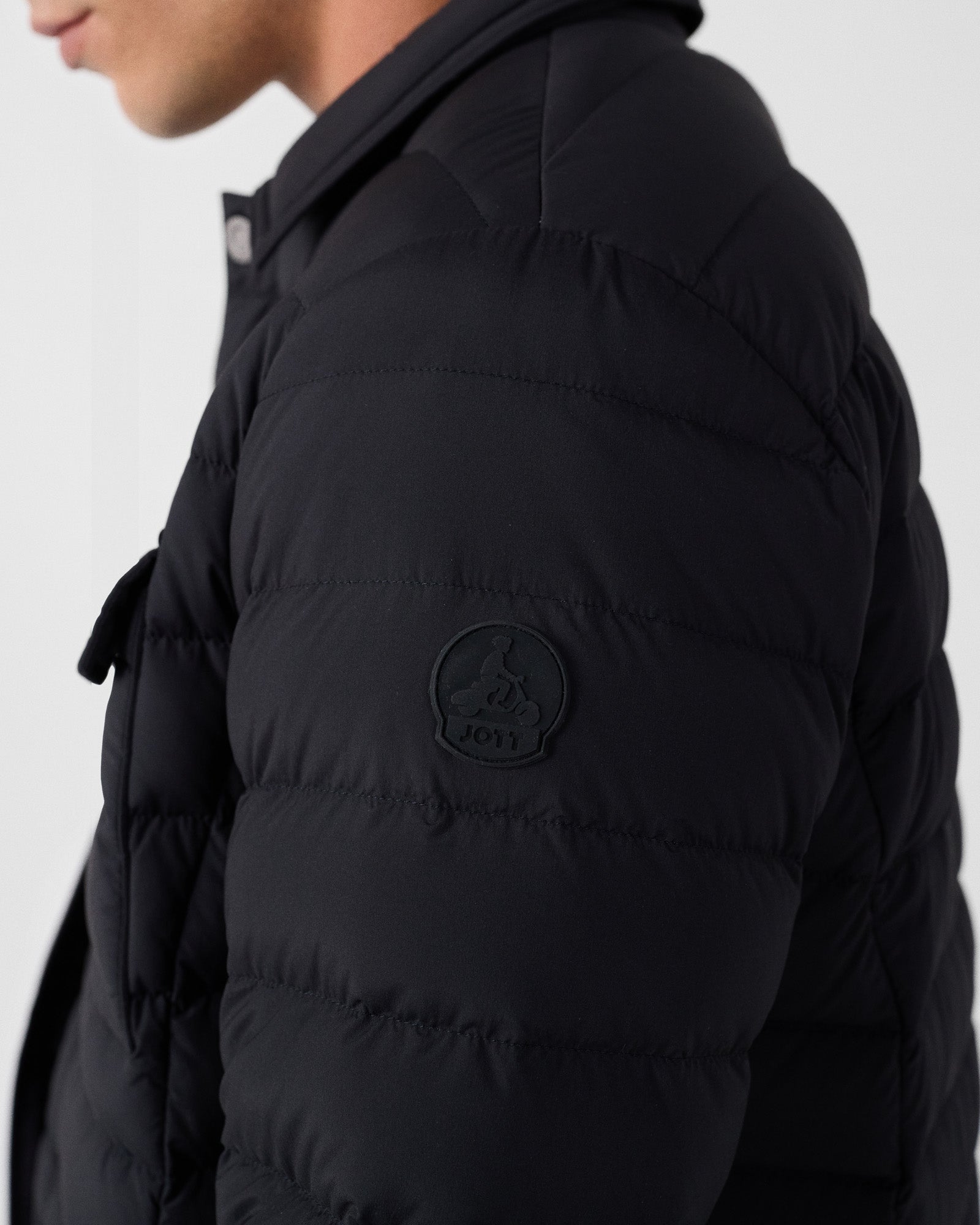 Une surchemise doudoune au design travaillé, entre structure et décontraction. Son col chemise twisté d'une banane dissimulée et sa patte boutonnée graphique donnent le ton : c’est la pièce hybride et stylée de la saison. Conçue dans un tissu stretch mat confortable, elle structure la silhouette tout en assurant une vraie liberté de mouvement.